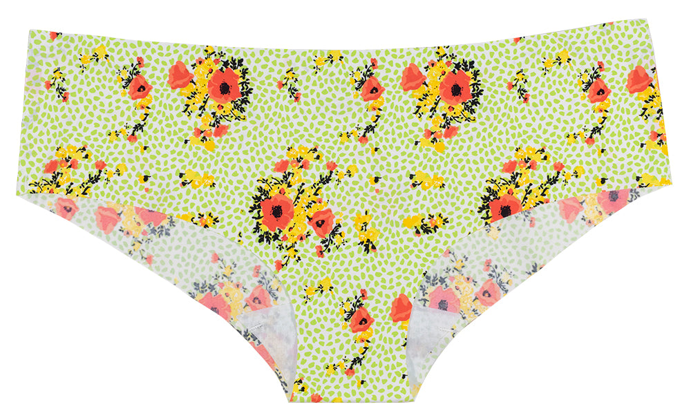 Fresh, flirty, and oh-so-comfy—this low-rise hipster is a little slice of spring. A rich green backdrop is dotted with playful pops of yellow and orange florals, giving you a look that’s as pretty as it is practical. Sleek laser-cut edges mean no visible lines under clothes, while the silky-smooth 90% nylon / 10% spandex fabric moves with you for all-day comfort.