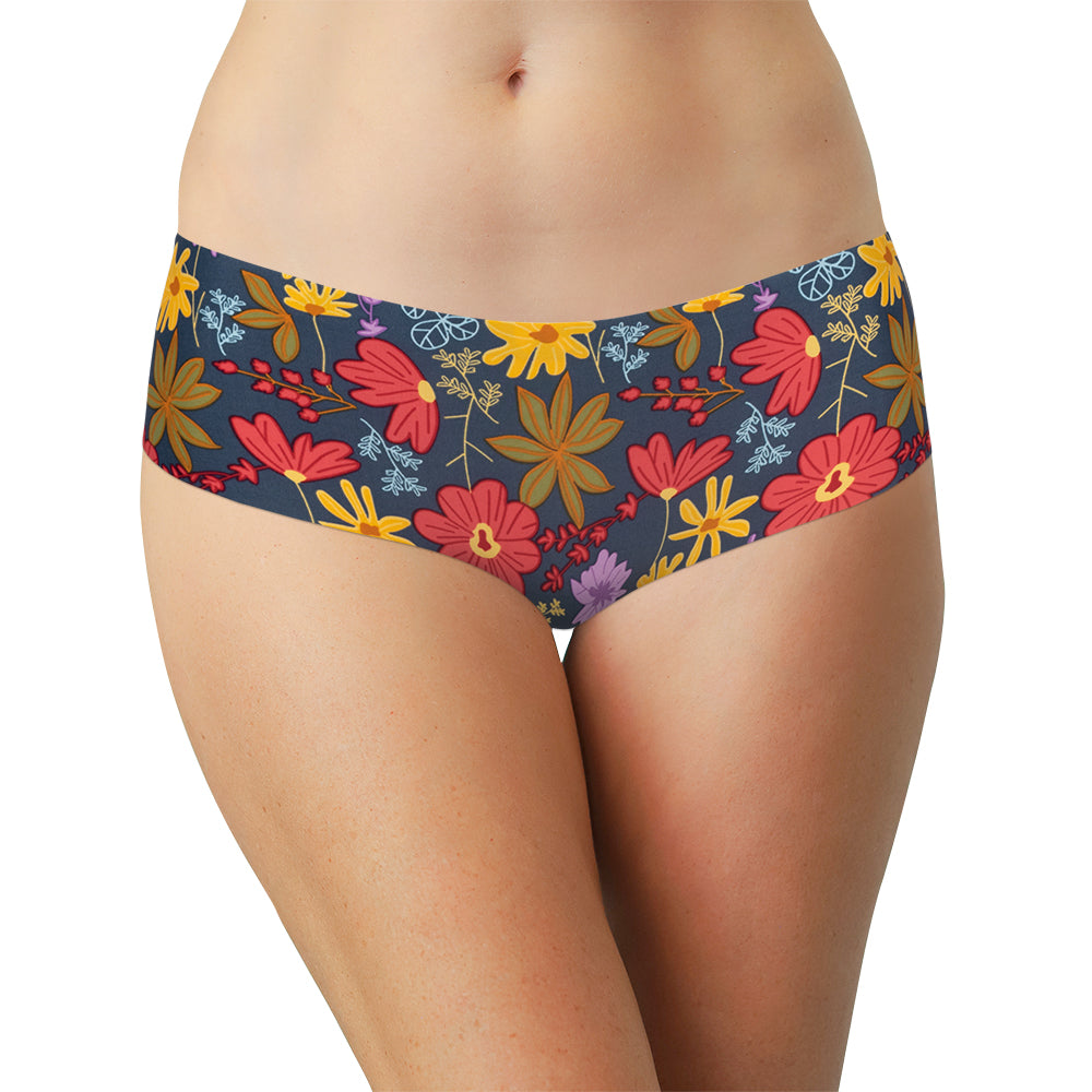 Embrace vibrant comfort with the Vibrant Garden No-Show Laser Cut Hipster. This panty features a playful garden-inspired print in bold reds and blues, bringing a touch of nature to your everyday essentials. Crafted from Love Libby's signature laser-cut fabric, it offers a silky smooth, lightweight feel with just the right amount of stretch for a barely-there sensation. The bonded waistband and unbonded leg openings ensure a seamless, invisible fit under clothing. Designed for comfort and style, this hipster provides full-body coverage while sitting low on the hips.